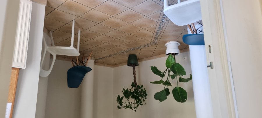 1 grande salle d attente, 2 salles de travail : 1 salle de consultation de 34m2 + 1 salle de 24m2 utilisé comme pièce de stockage et fabrication des semelles, 1 wc public + un w.c privé.