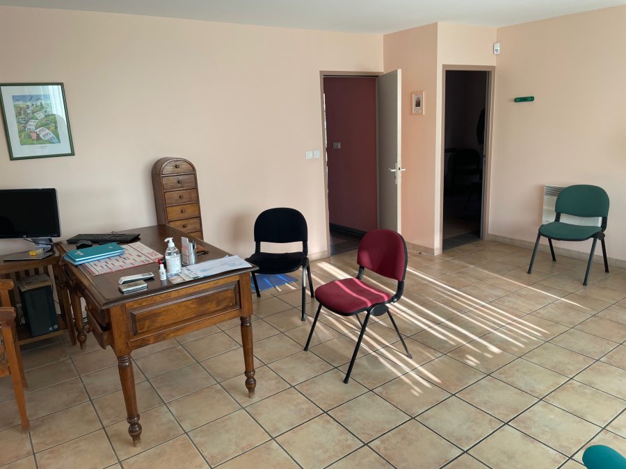 Il est très lumineux, l'atelier est attenant au cabinet et la salle d'attente est commune avec l'infirmière. Des espaces communs professionnels sont mis à disposition : WC, douche et salle à manger.