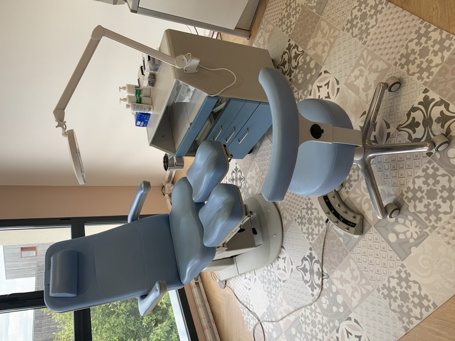 À vendre ensemble avec fauteuil électrique 3 moteurs Bel X trade, siège praticien et meubles à roulettes et tiroirs assortis
